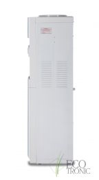 Кулер "Экочип" V21-LN white+silver. Бюджетный аналог классической модели Ecotronic Н1. Напольный кулер Без охлаждения. Цвет белый с серебристой вставкой. Тип кранов подачи воды - "Нажим кружкой". Бак нагрева 1,1 л неразборый.
