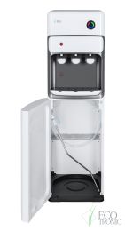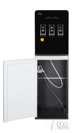 Модель с электронным охлаждением, со стандартной производительностью. Есть индикация работы аппарата, нагрева, охлаждения и необходимости заменить бутыль. Бак горячей воды с бандажным (внешним) нагревателем для работы с более жесткой водой и долговечности.