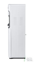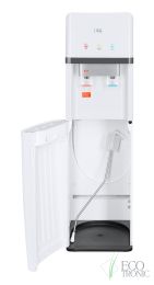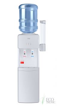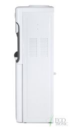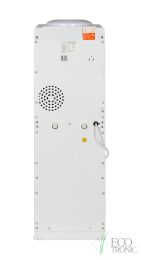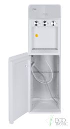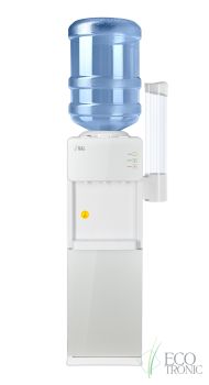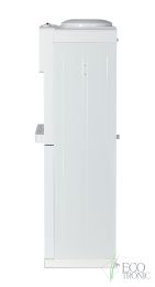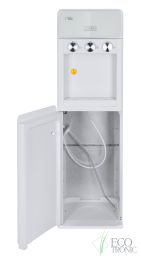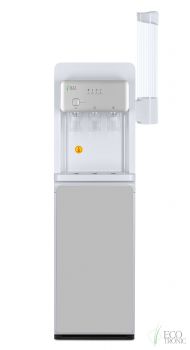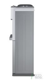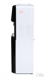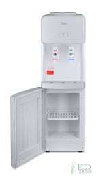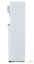 Стильные алюминиевые поворотные краны, корпус белого цвета с серебристыми вставками на передней панели, серебристый лоток водоприема и нижний отсек, в котором полностью скрывается бутыль, позволяют эффектно вписать этот кулер в современный интерьер с продуманным дизайном.