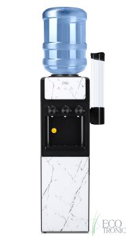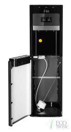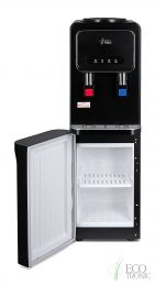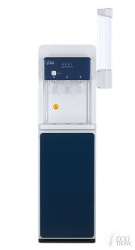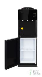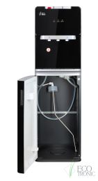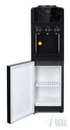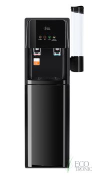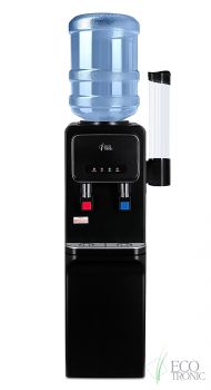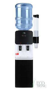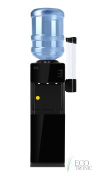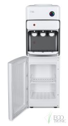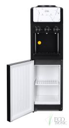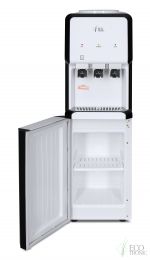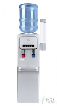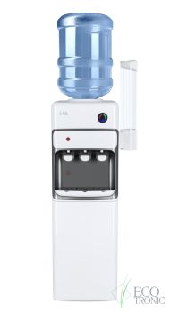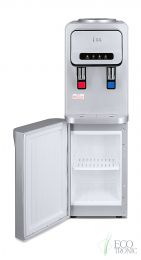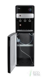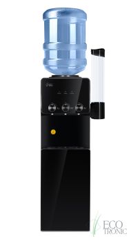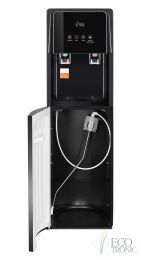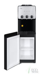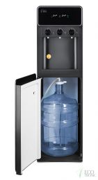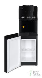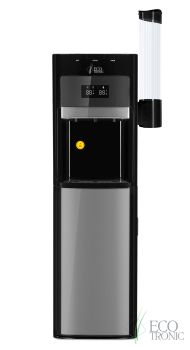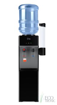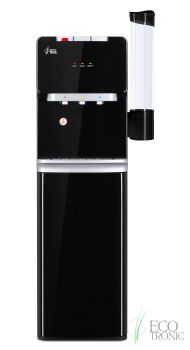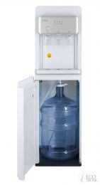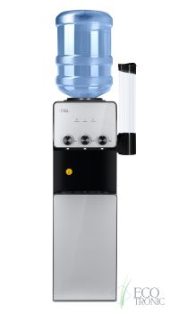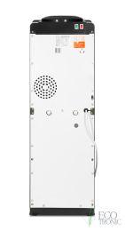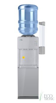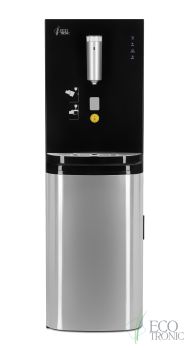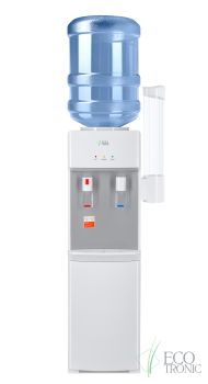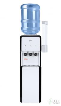 Напольный кулер с нижней загрузкой бутыли, поворотными кранами подачи воды и электронным охлаждением.