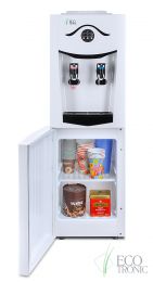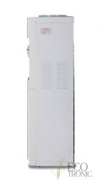 Кулер Ecotronic H1-L White. Напольный кулер с компрессорным охлаждением. Тип кранов подачи воды - "Нажим кружкой". Отличие от дешевых аналогов - разборный бак горячей воды (не сварной) для простого и не дорогого ремонта в дальнейшем, цельнотянутый (не сварной) нержавеющий бак холодной воды для долгой эксплуатации, штуцеры кранов из нержавеющей стали, компрессоры китайских брендов высшего дивизиона Хуайю или Данфу с медной оплеткой (не дешевый алюминий) для эффективной, менее шумной и долгой эксплуатации. Сложное разборное гнездо с функцией защиты от протечек и со съемной иглой. Наши аппараты дороже - потому что лучше. Выбирайте настоящий Ecotronic, а не дешевые аналоги.